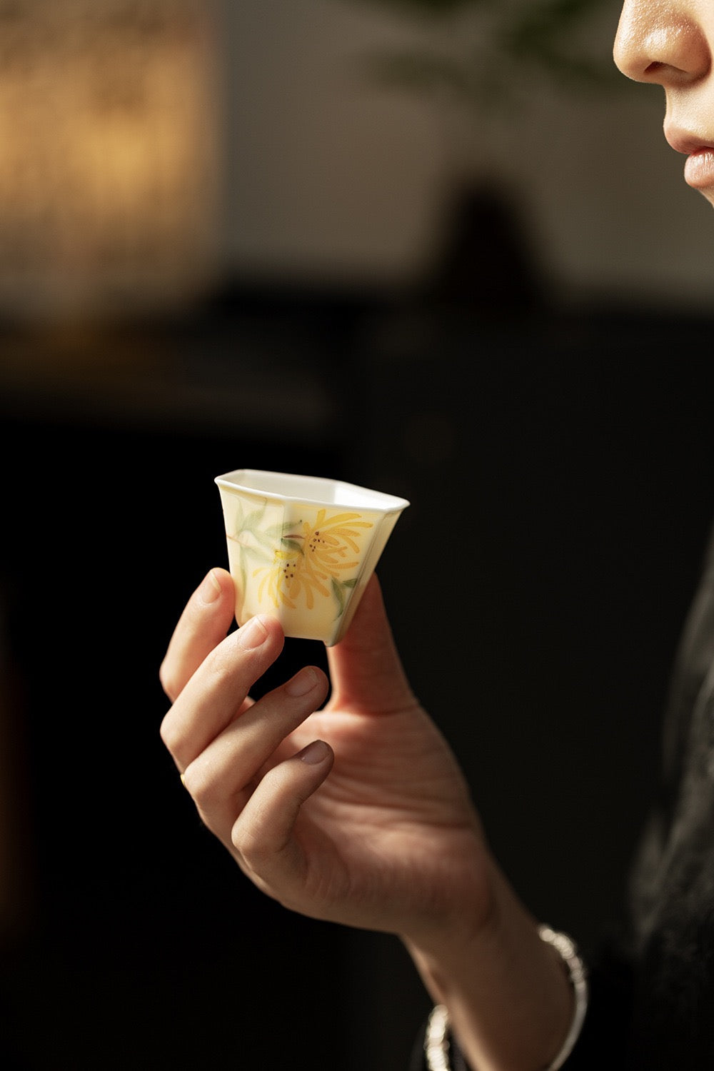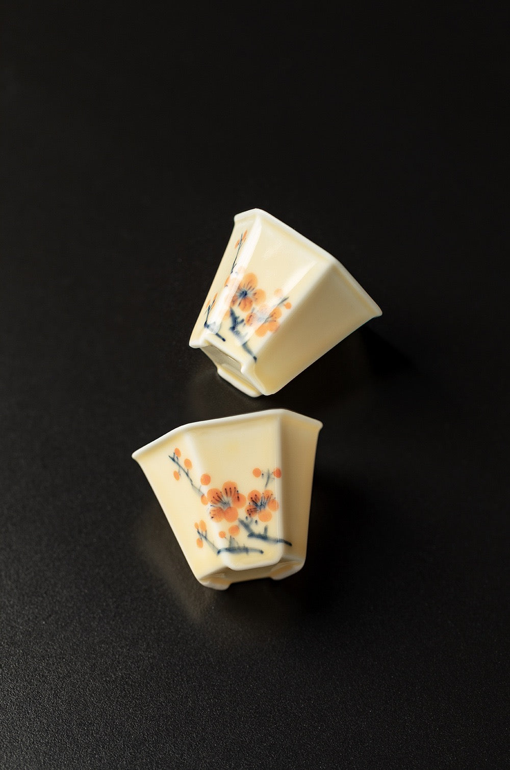 Hand-painted Plum, Orchid, Bamboo, Chrysanthemum cover bowl with 2 teacups